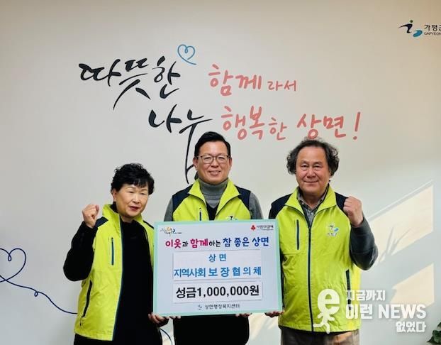 이런뉴스(e-runnews) 김삼성 기자 | 가평군 상면 지역사회보장협의체(지사협)는 29일 회원들이 자발적으로 모은 회비 100만원을 상면 행정복지센터에 기탁했다.