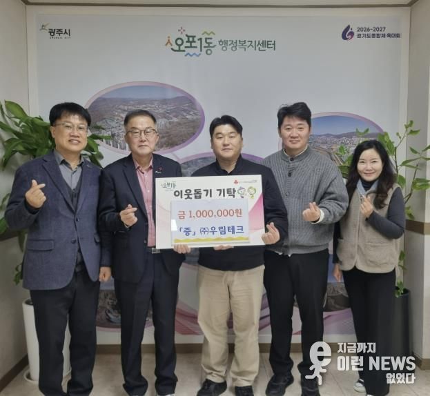 이런뉴스(e-runnews) 김삼성 기자 | ㈜우림테크 임택현 대표는 30일 지역 내 어려운 이웃을 위해 사용해 달라며 성금 100만 원을 광주시 오포1동 행정복지센터에 전달했다.