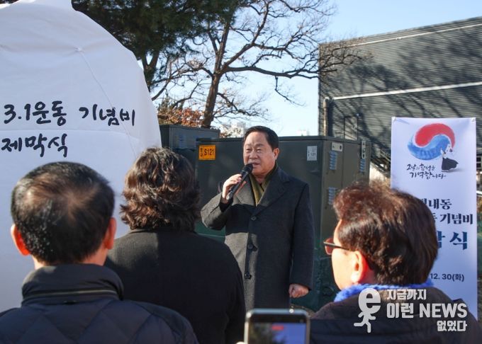 이런뉴스(e-runnews) 김삼성 기자 | 남양주시는 2025년 12월 30일, 평내동 647-1번지 공원 내에서 ‘평내동 3·1운동 기념비 제막식’을 개최했다.