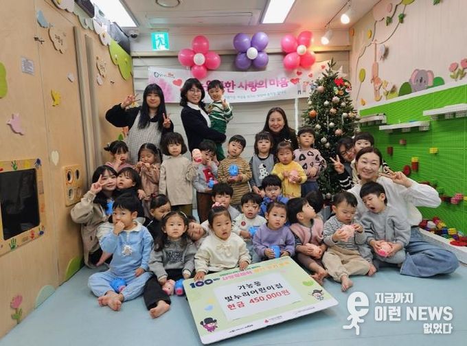 이런뉴스(e-runnews) 김삼성 기자 | 의정부시 가능동주민센터는 12월 29일 공립빛누리어린이집이 지역 내 어려운 이웃을 돕기 위해 성금 45만 원을 기탁했다고 밝혔다.