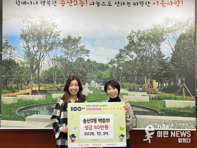 이런뉴스(e-runnews) 김삼성 기자 | 의정부시 송산2동주민센터는 12월 29일 송산2동 지역사회보장협의체 박준희 부위원장이 어려운 이웃을 돕기 위해 성금 50만 원을 기탁했다고 밝혔다.