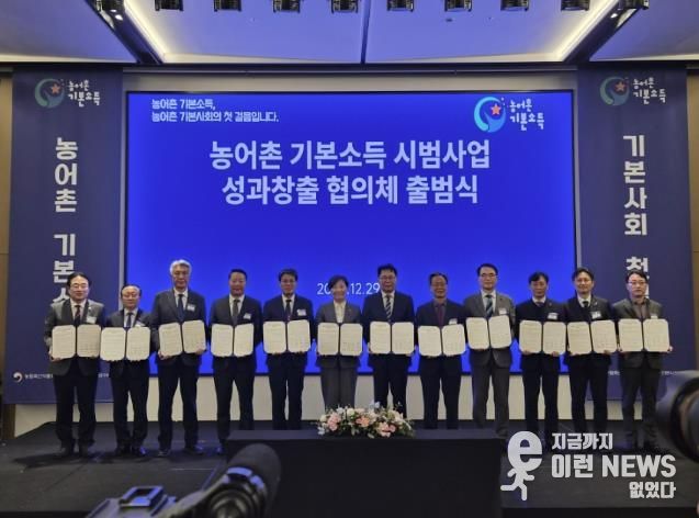 행사에서는 기본사회 강연을 시작으로 농어촌기본소득 시범사업 추진계획과 지역별 특화모델 운영 방향, 연구단 구성·운영 및 정책평가 계획이 공유됐다. 이어 농식품부–경인사연–10개 군이 참여하는 업무협약 체결과 협의체 출범 퍼포먼스, 기념촬영이 진행됐다.