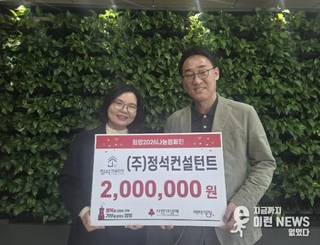 이은주 복지정책과장은 “올해에도 변함없는 나눔을 실천해 주신 ㈜정석컨설턴트에 진심으로 감사드린다”며 “기탁해 주신 성금이 취약계층의 생활 안정과 따뜻한 겨울나기에 기여할 수 있도록 책임 있게 활용하겠다”고 전했다.