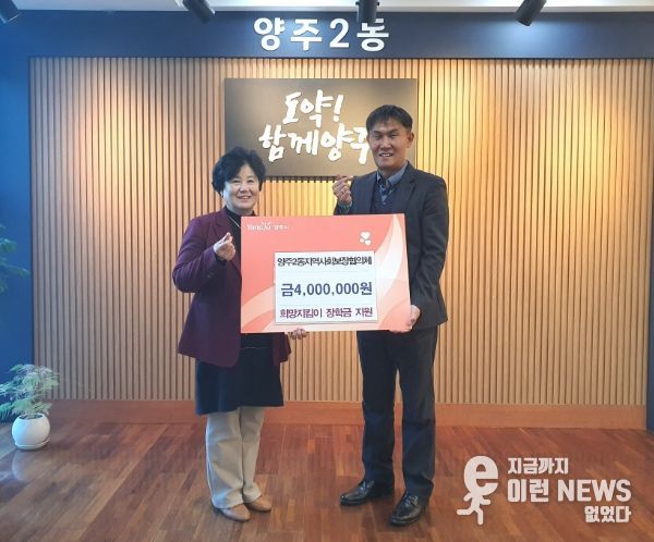 백기철 양주2동장은 “지역 학생들을 위해 따뜻한 나눔을 실천해 주신 양주2동 지역사회보장협의체에 깊이 감사드린다”며 “희망지킴이 장학금이 학생들에게 큰 응원과 용기가 되길 바란다”고 전했다.