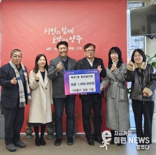 이런뉴스(e-runnews) 김삼성 기자 | 옥정1동 통장협의회가 31일 지역 내 어려운 이웃을 돕기 위해 ‘이웃돕기 성금 100만 원’을 옥정1동에 기부했다. 기부금은 관내 취약계층과 복지 사각지대 가정 지원을 위해 사용될 예정이다.