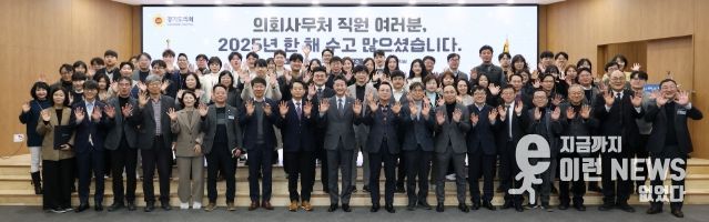 이런뉴스(e-runnews) 김삼성 기자 | 경기도의회 김진경 의장(더민주·시흥3)은 31일 도의회 대회의실에서 2025년 한 해를 마무리하는 의회사무처 종무식을 열고, 사무처 직원들에 대한 격려와 감사의 마음을 전했다.