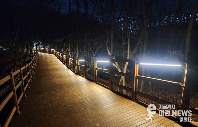 서봉숲속 근린공원 내 동선을 포함해 약 700m 규모로 이뤄진 숲길은 시설의 내구성을 높이기 위한 덱(DECK)길 설치와 노후한 시설 교체, LED조명을 설치해 다양한 연령층이 이용할 수 있는 보행 친화적 숲길 환경을 조성했다.