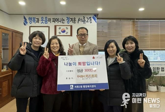 세류2동 변영호 동장은 “매년 사랑 나눔 실천을 해주신 ㈜치즈트리에 감사드리며, 앞으로도 민·관 협력을 통해 행복과 웃음이 피어나는 정겨운 세류2동을 만들어가겠다.”라고 말했다.