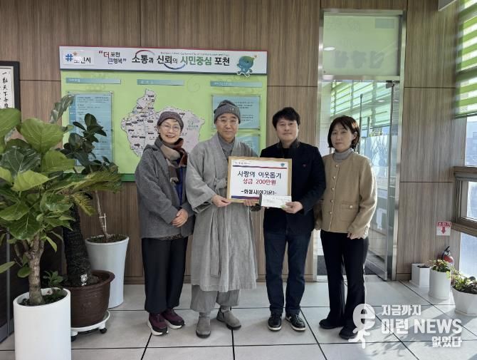 이런뉴스(e-runnews) 김삼성 기자 | 포천시 가산면행정복지센터는 지난 12월 30일, 가산면 소재 사찰 화봉사가 지역 내 취약계층 지원을 위해 성금 200만 원을 기탁했다고 밝혔다.