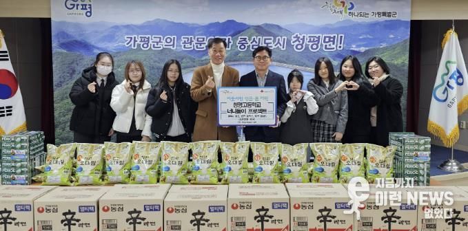 이런뉴스(e-runnews) 김삼성 기자 | 가평군 청평고등학교 교직원과 학생들은 지난 연말 청평면 행정복지센터를 방문해 200만원 상당의 쌀(4kg들이) 30개, 라면 30박스, 치약30세트를 기탁했다.