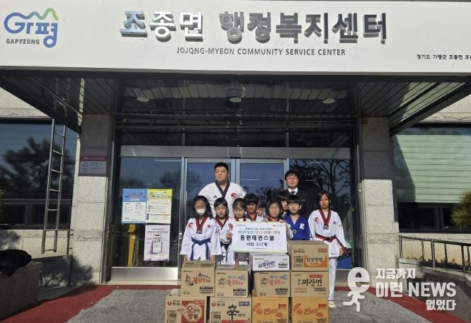 이런뉴스(e-runnews) 김삼성 기자 | 가평 동원태권스쿨은 지난해 연말 조종면 행정복지센터를 방문해 라면 377개를 기탁하며 이웃사랑을 실천했다.