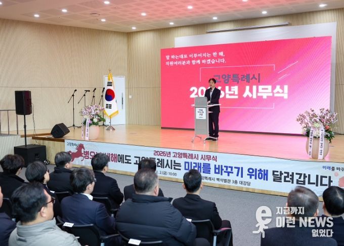 이런뉴스(e-runnews) 김삼성 기자 | 고양특례시는 2일, 고양시청 백석별관 대강당에서 새해 시무식을 열고 2026년 병오년의 힘찬 출발을 다짐했다.