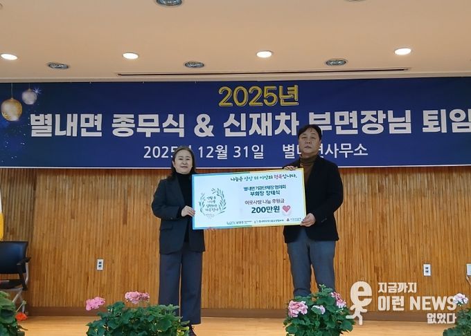 이런뉴스(e-runnews) 김삼성 기자 | 남양주시는 지난달 31일 열린 ‘2025년 별내면 종무식’에서 별내면 기관단체장협의회가 지역 내 취약가구 지원을 위해 후원금 200만 원을 별내면 지역사회보장협의체에 기탁했다고 2일 밝혔다.