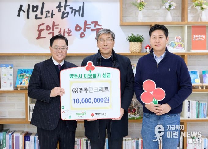 이런뉴스(e-runnews) 김삼성 기자 | 양주시는 2일 시장실에서 ㈜주주콘크리트로부터 이웃돕기 성금 1,000만 원을 기탁받았다.
