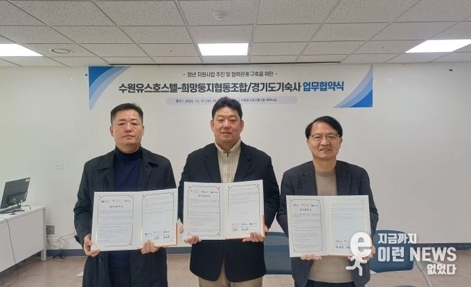 이런뉴스(e-runnews) 김삼성 기자 | 수원시청소년청년재단(이사장 최종진) 수원유스호스텔은 지난 2025년 12월 31일 청년 지원사업의 활성화와 상호 협력체계 구축을 위해 업무협약(MOU)를 체결했다.