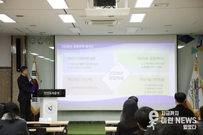 허숭 안산도시공사 사장은 “2026년은 자체사업 성장과 시민 체감 서비스 강화를 통해 공사의 경쟁력을 높이는 해가 될 것”이라며 “경영목표 달성을 위해 조직과 업무 방식을 지속적으로 혁신하고, 시민과 함께 성장하는 공기업이 되겠다”고 말했다.