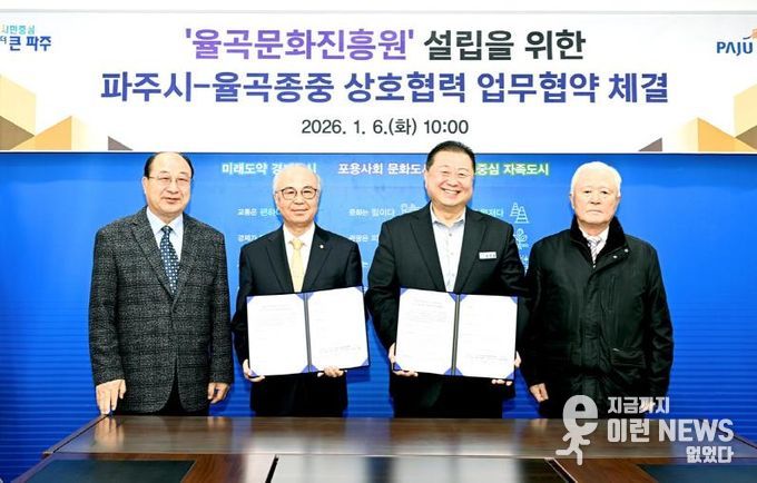 이런뉴스(e-runnews) 김삼성 기자 | 파주시가 율곡 이이 선생의 학문과 철학을 체계적으로 계승하기 위해 추진 중인 ‘율곡문화진흥원’설립을 위해 지난 6일 율곡 선생의 후손인 덕수 이씨 종중과 업무협약을 체결했다.