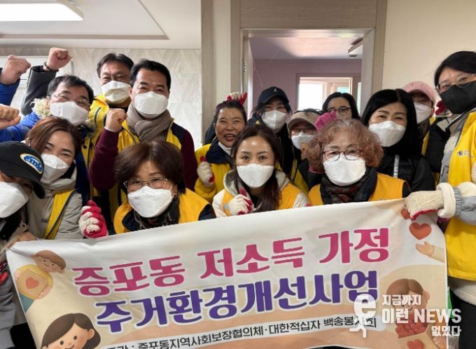 이런뉴스(e-runnews) 김삼성 기자 | 증포동 지역사회보장협의체와 대한적십자 백송봉사회는 지난 6일, 복지대상자 가구를 대상으로 주거환경 개선을 위한 청소 봉사활동을 실시했다.