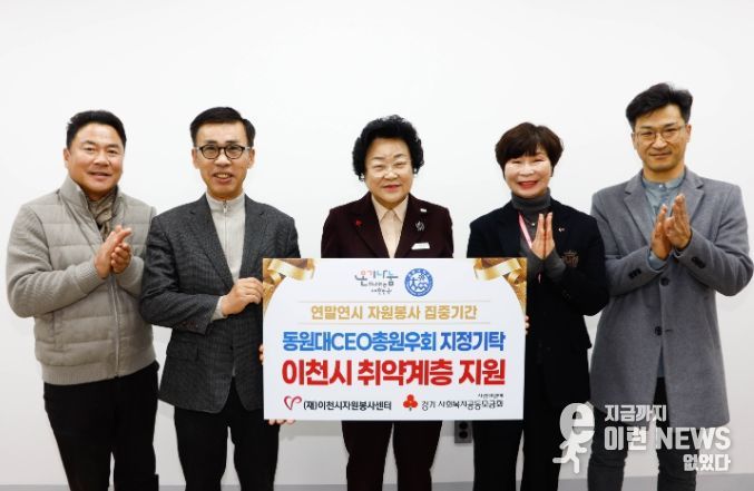 이런뉴스(e-runnews) 김삼성 기자 | (재)이천시자원봉사센터는 동원대 CEO 총원우회가 연말연시 집중 자원봉사 기간을 맞아 이천시 취약계층 지원을 위한 성금 300만 원을 기탁했다고 7일 밝혔다.
