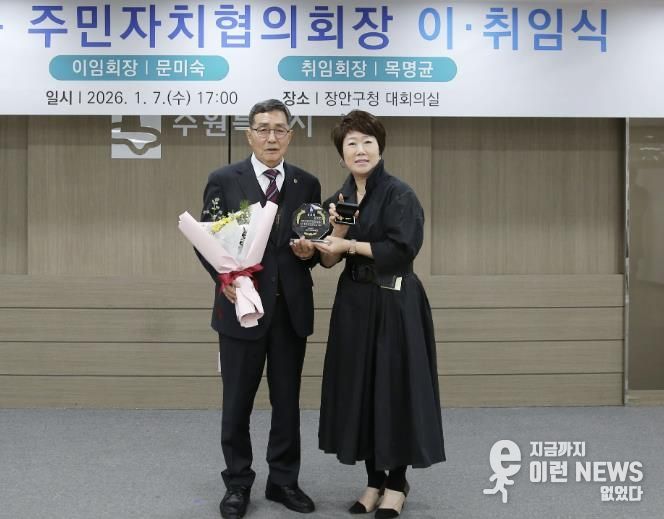 이번 이·취임식에는 각 동 주민자치회장과 위원, 장안구 단체장 등 100여 명이 참석한 가운데, 지난 1년간 장안구 주민자치 활성화를 위해 헌신한 문미숙 협의회장에 대한 감사를 표하고 새로 취임하는 목명균 협의회장에게 축하를 전하는 자리를 가졌다.