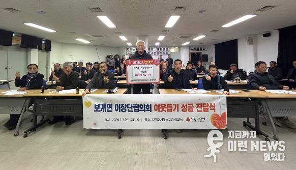 보개면 이장단협의회는 “2026년 새해를 맞이하여 각 마을 이장님과 좀 더 뜻깊은 출발을 다짐하는 의미에서 이번 성금을 기탁하게 됐다.”며, “앞으로 이장 단에서는 지역 주민들을 위해 더 열심히 봉사하며 살기 좋은 보개면을 만들기 위해 앞장서겠다“고 소감을 밝혔다.
