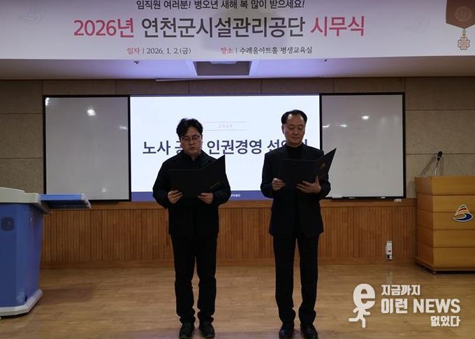 이런뉴스(e-runnews) 김삼성 기자 | 연천군시설관리공단은 1월 2일 시무식 행사를 통해 노사 공동 인권경영 선언식을 개최했다고 밝혔다. 이번 행사는 새해를 맞아 노사가 함께 인권 중심의 경영을 다짐하며 2026년의 첫 발을 내딛기 위해 마련됐다.