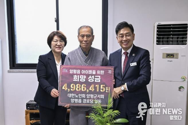 이번 성금은 양평읍 82개 경로당 중 68개소가 참여해 마련한 것으로, 어르신들이 “아이들을 위해 무엇을 할 수 있을까”를 고민하며 각자의 형편에 맞게 정성을 모아 조성됐다. 큰 금액보다 마음을 먼저 내어놓은 나눔이라는 점에서 그 의미가 더욱 깊다.
