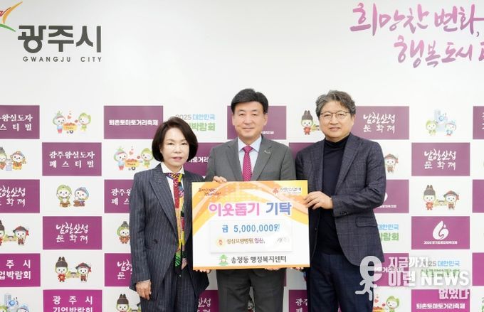 이런뉴스(e-runnews) 김삼성 기자 | 성심요양병원 유미하 이사장과 일신산업전기(주) 고수영 대표는 8일 광주시 송정동에 이웃돕기 성금 500만 원을 기탁했다.