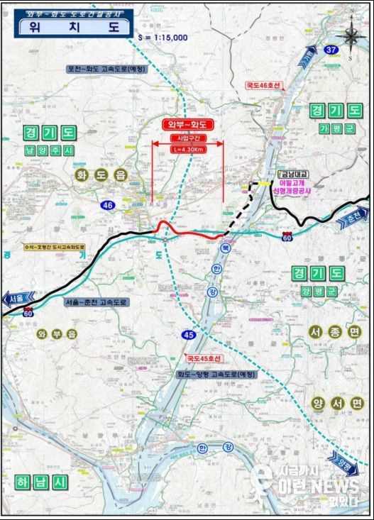 이런뉴스(e-runnews) 김삼성 기자 | 국가지원지방도 86호선 와부~화도 4.3㎞ 구간이 5년 8개월 동안의 공사를 마치고 13일 전격 개통된다.