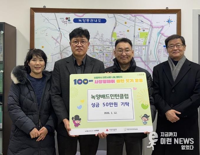 이런뉴스(e-runnews) 김삼성 기자 | 의정부시 녹양동주민센터는 1월 12일 녹양배드민턴클럽이 성금 50만 원을 기탁하며 ‘100일간 사랑릴레이 배턴 잇기’에 동참했다고 밝혔다.