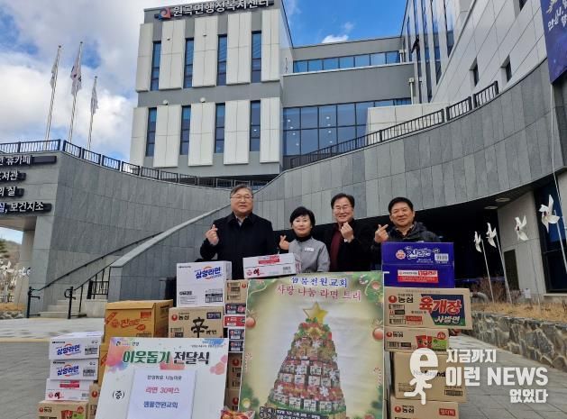 이런뉴스(e-runnews) 김삼성 기자 | 샘물전원교회는 지난 1월 9일 원곡면행정복지센터를 방문해 지역 내 어려운 이웃을 위해 써 달라며 라면 30박스를 기탁했다.
