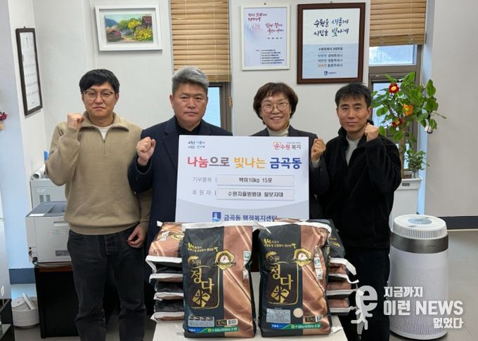 수원자율방범대 칠보지대는 13일 금곡동 행정복지센터를 방문해 백미 10kg 15포를 전달하며 지역 내 어려운 이웃을 위한 나눔을 실천했다.