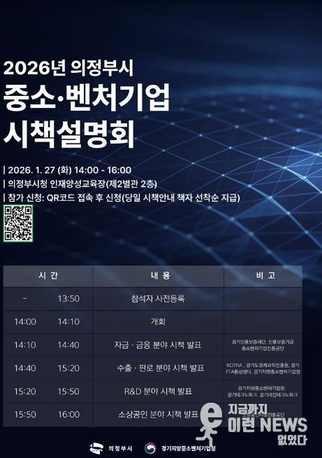 이런뉴스(e-runnews) 김삼성 기자 | 의정부시는 ‘2026년 중소‧벤처기업 시책설명회’에 참가할 지역 중소‧벤처기업인을 1월 26일까지 모집한다.