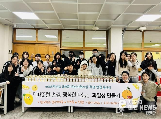 완성된 과일청은 1월 13일, 각 학교를 대표한 학생들과 교육복지사가 양주 백석읍 행정복지센터를 통해 겨울철 건강 취약계층 등 지역사회 이웃들에게 전달했다. 활동 이후에는 소감 나눔 및 만족도 조사 시간을 통해 학교 간 경험을 공유하고, 연합 활동의 의미를 되새기는 시간을 가졌다.