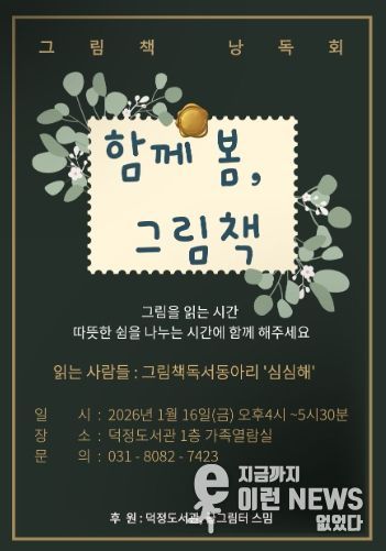 이런뉴스(e-runnews) 김삼성 기자 | 양주시 덕정도서관은 오는 1월 16일 16시부터 17시 30분까지, 도서관 1층 가족열람실에서 그림책 낭독회 '함께 봄, 그림책'을 운영한다.