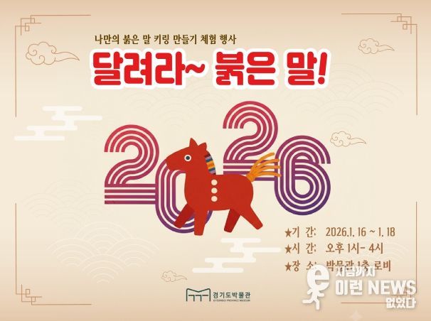 이런뉴스(e-runnews) 김삼성 기자 | 경기문화재단 경기도박물관(관장직무대행 박본수)은 병오년 새해를 맞아 관람객을 위한 체험형 교육행사 〈달려라~ 붉은 말!〉을 1월 16일부터 18일까지 3일간 박물관 로비에서 운영한다.