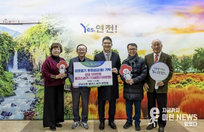 이런뉴스(e-runnews) 김삼성 기자 | 연천군 군남교회는 지난 6일 연천군청을 방문해 지역 내 어려운 이웃을 위한 성금 100만원과 블리스버거앤카페 블리스버거 113세트(130만원 상당)를 기탁했다.