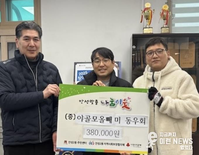 이에 남선우 안성2동장은 “새해를 맞아 이웃을 위한 따뜻한 나눔에 동참해 주신 나이트 오울스 회원분들께 감사드린다”며 “전달받은 소중한 성금은 복지 사각지대에 놓인 어려운 이웃들에게 잘 전달해 따뜻한 안성2동을 만드는 데 최선을 다하겠다”고 말했다.