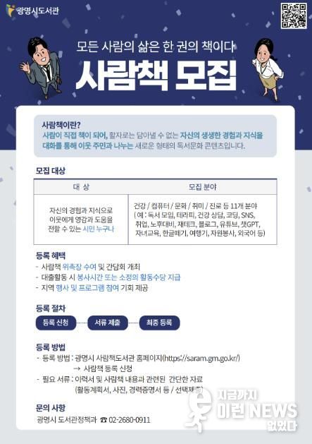 박승원 광명시장은 “사람책도서관은 시민 한 사람 한 사람의 삶을 지역의 소중한 지식 자산으로 연결하는 의미 있는 학습 플랫폼”이라며 “시민들이 서로의 역량을 발견하고 나누는 선순환 구조를 만들어, 시민이 주도하는 평생학습 도시 광명을 실현해 나가겠다”고 밝혔다.