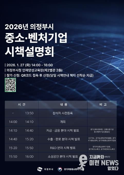 이런뉴스(e-runnews) 김삼성 기자 | 의정부시는 1월 27일 시청 인재양성교육장에서 ‘2026년 중소‧벤처기업 시책설명회’를 개최한다.
