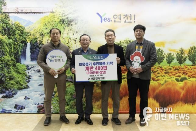 이런뉴스(e-runnews) 김삼성 기자 | 연천군양계협회는 지난 15일 연천군청을 방문해 지역 내 취약가정을 지원하기 위해 계란 400판(300만원 상당)을 연천군가족센터에 후원물품으로 지정 기탁했다.