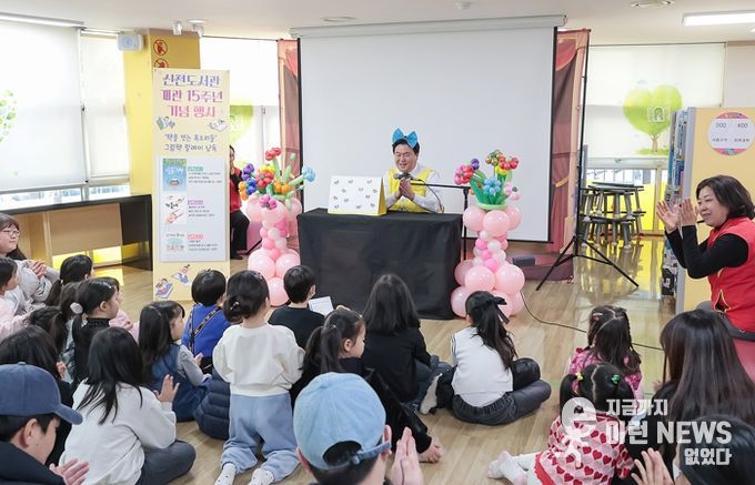 이날 행사는 유아동과 어린이를 동반한 가족 80여 명이 참여한 가운데 오전 10시부터 2시간가량 진행됐으며, 지난 15년간 지역사회 지식ㆍ문화 공간으로 자리매김해 온 신천도서관의 발자취를 시민과 함께 되돌아보고 축하하는 자리로 마련됐다.