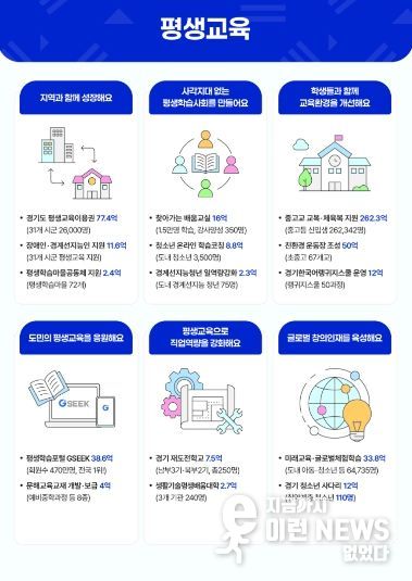 이런뉴스(e-runnews) 김삼성 기자 | 경기도가 올해 취·창업 실패 후 재도약을 원하는 사람들을 위한 ‘재도전학교’, 학습 취약계층에 학습 기회를 지원하는 ‘평생교육이용권’, ‘찾아가는 배움교실’ 등 다양한 평생교육 사업을 추진한다.