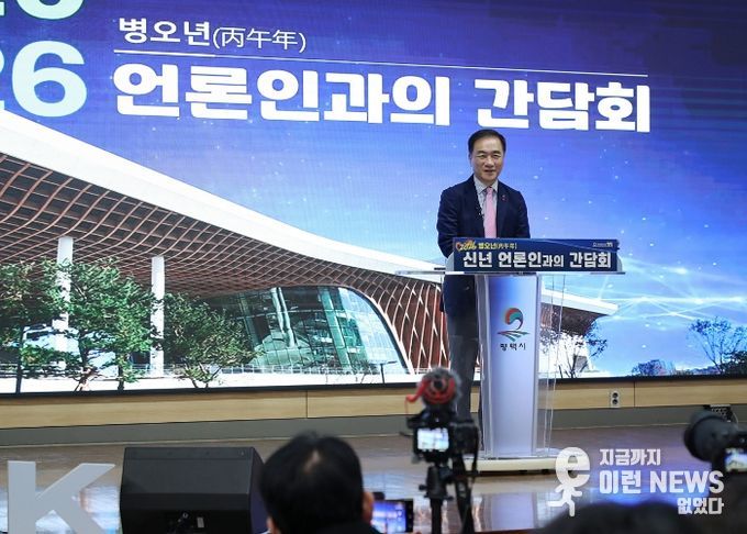 이런뉴스(e-runnews) 김삼성 기자 | 평택시가 2026년 병오년을 맞아 신년 언론인 간담회를 19일 열어 새해 주요 시정 방향을 밝혔다. 이번 간담회에는 100여 명의 언론인과 정장선 평택시장을 비롯한 간부 공무원이 참석했으며, 주요성과 발표, 2026년 주요 시책 설명, 질의응답 순으로 진행됐다.