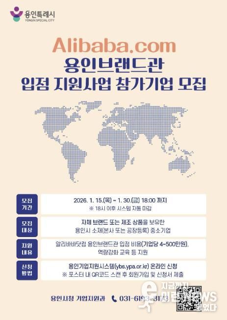 이런뉴스(e-runnews) 김삼성 기자 | 용인특례시는 오는 1월 30일까지 B2B(기업 간 거래) 플랫폼 알리바바닷컴 내 ‘용인브랜드관’(YoGo) 입점 참가기업을 모집한다고 20일 밝혔다.