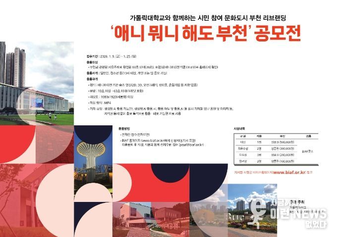 이런뉴스(e-runnews) 김삼성 기자 | 제28회 부천국제애니메이션페스티벌은 가톨릭대학교 RISE 사업단과 BIAF와 협력하여 시민이 직접 참여하는 숏츠 공모전 ‘애니 뭐니 해도 부천’의 참가 작품을 모집한다.