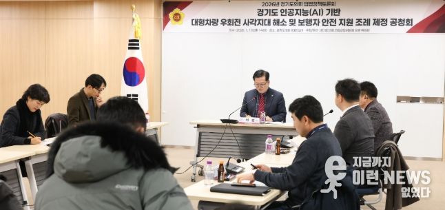 이런뉴스(e-runnews) 김삼성 기자 | 경기도의회 건설교통위원회 허원 위원장(국민의힘·이천2)은 19일 경기도의회 중회의실에서 '경기도 인공지능(AI) 기반 대형차량 우회전 사각지대 해소 및 보행자 안전 지원 조례' 제정을 위한 공청회를 개최했다.