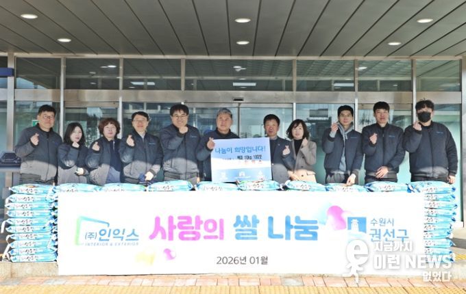 이런뉴스(e-runnews) 김삼성 기자 | 수원시 권선구는 21일 ㈜인익스에서 설 명절을 맞이하여 후원한 백미(10kg) 100포에 대한 전달식을 진행했다.