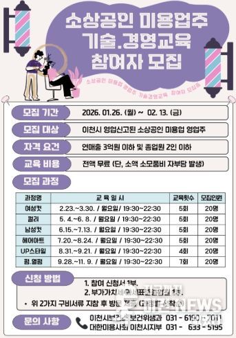 모집 기간은 2026년 1월 26일부터 2월 13일까지이며, 신청은 이천시보건소 보건위생과와 대한미용사회 이천시지부에서 할 수 있다.