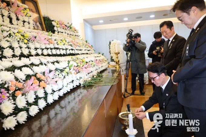 이런뉴스(e-runnews) 김삼성 기자 | 김민석 국무총리가 27일 종로구 서울대학교병원 장례식장에서 故 이해찬 민주평통 수석부의장의 빈소를 조문하고 있다.